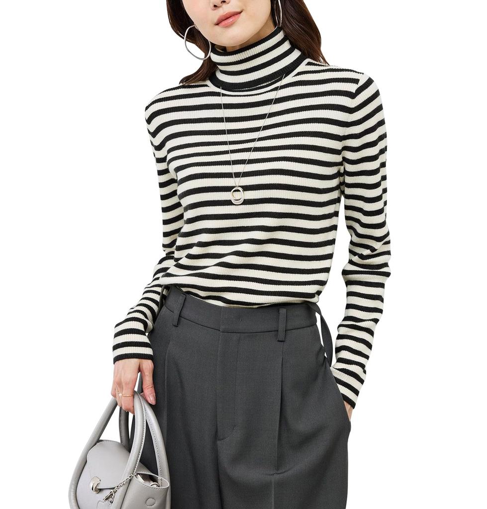 ROPE PICNIC Rib Turtle Knit F Anti-Pilling Pullover/Easy Care, Off-White (17)