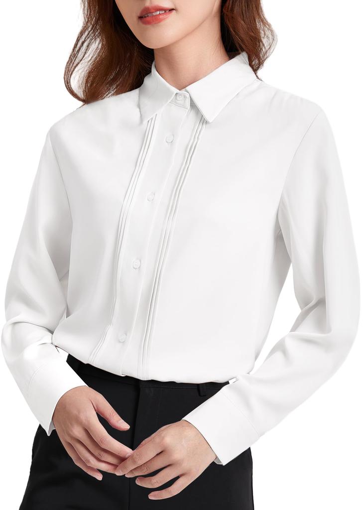 Enmain White Long Sleeve Chiffon Shirt Perfect for Office or No and Size 303S Women's Blouse, Commuting, Iron, Cute, Casual, Stylish,