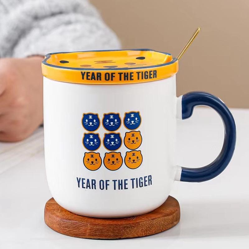 Cute Little Tiger Mug with Lid Spoon Cartoon Ceramic Mug Creative Large Capacity Couple Coffee Water Mug Gift Box