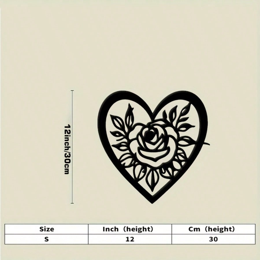 Metal Wall Art Heart Rose Floral Design Black Iron Decor Romantic Gift Home