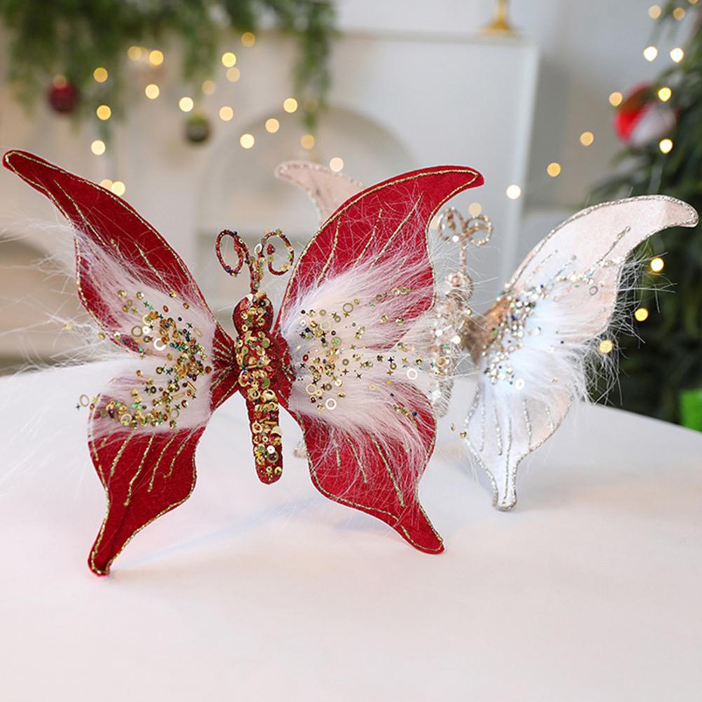 Eye-catching Holiday Decor Beautiful Holiday Embellishment Sparkling Butterfly Christmas Ornaments 3d Sequined for Tree
