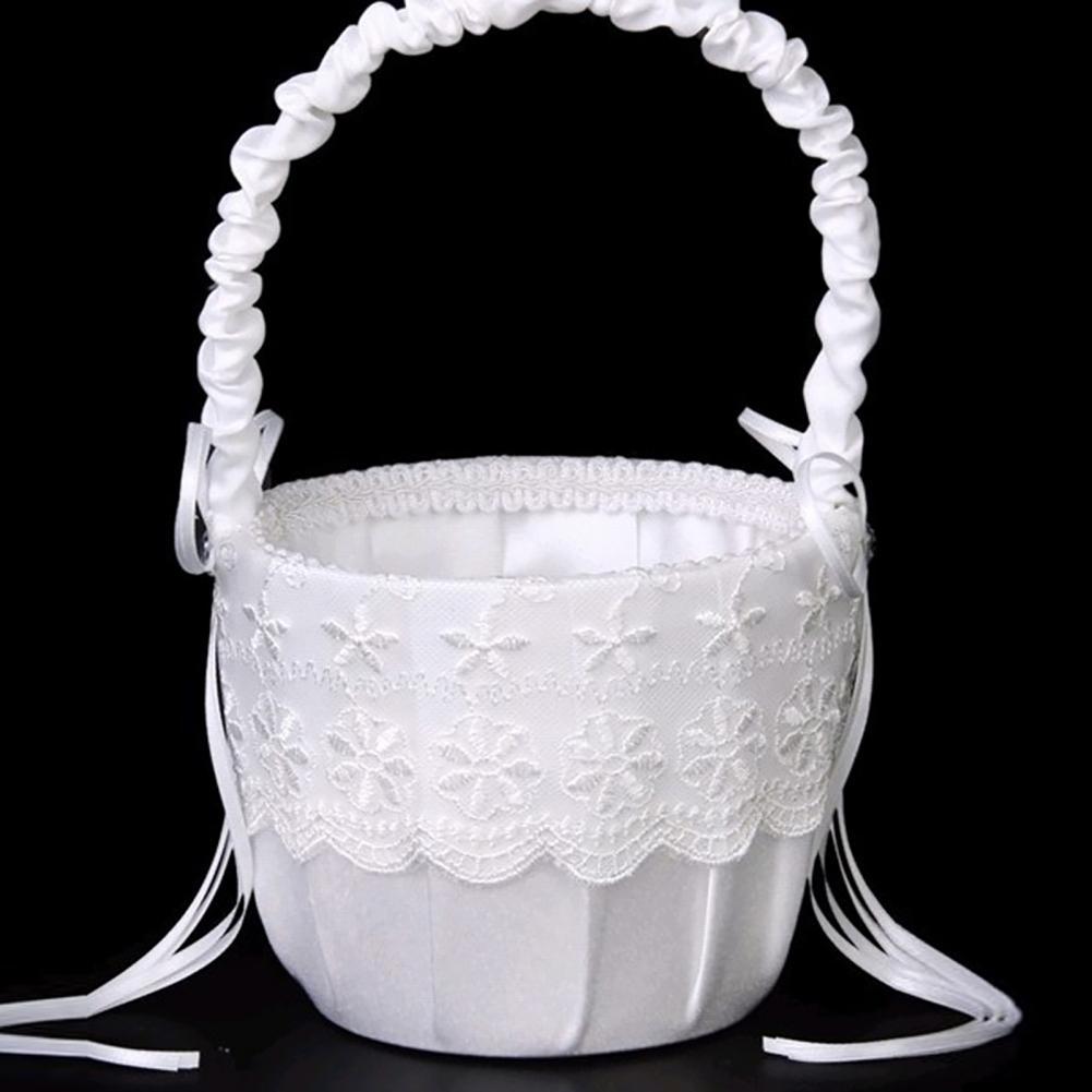 Romantic Flower Pearl Bowknot Basket Flower Basket Wedding Ceremony Party Rose Flower Girl Makeup Basket Party Petals Basket
