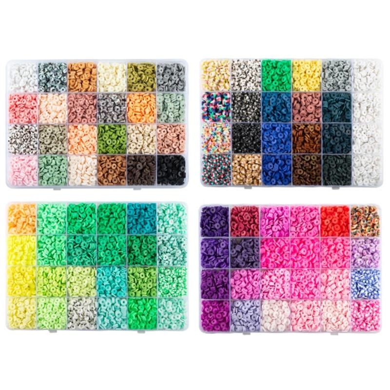 24 Color Clay Beads for Bracelet Making, Flat Clay Beads with Storage Box for DIY Jewelry Bracelet Necklace Making