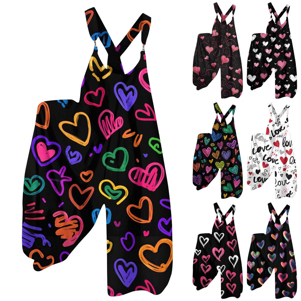 Women's Overalls Print Vintage Jumpsuit ,Non,Adjustable Straps,