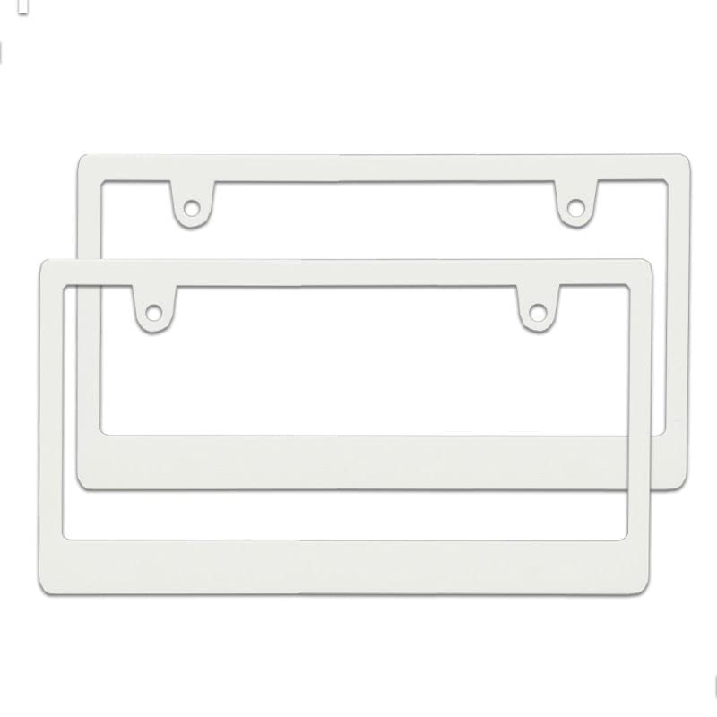 [New Regulation Compliant] White, Matte White License Plate Frames for DIY Customization, Sticker and Emblem Application (Set of 2)