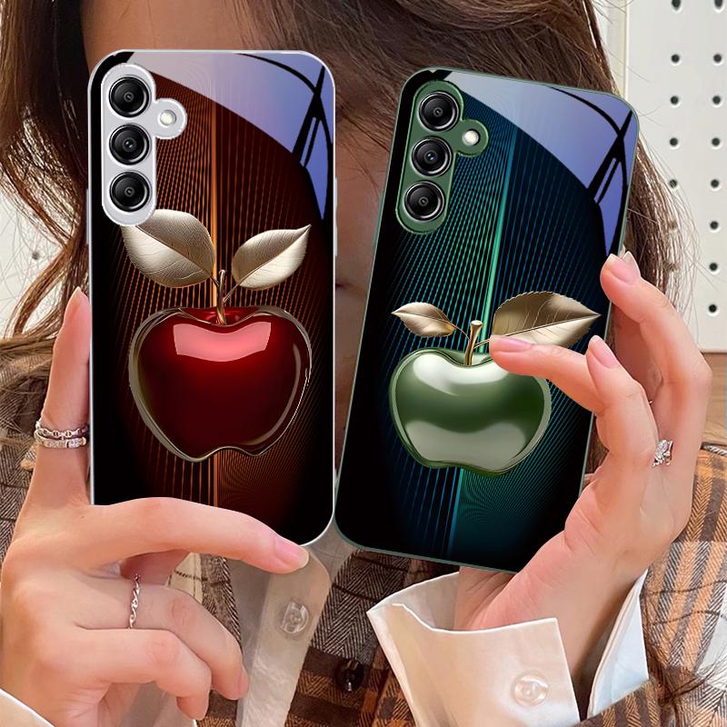 Stripe Gradient Apple Red For Samsung Galaxy A14 4G 20 30 52 20S 21S 22 32 33 34 42 50 51 53 54 70 71 72 73 5G Glass Phone Case