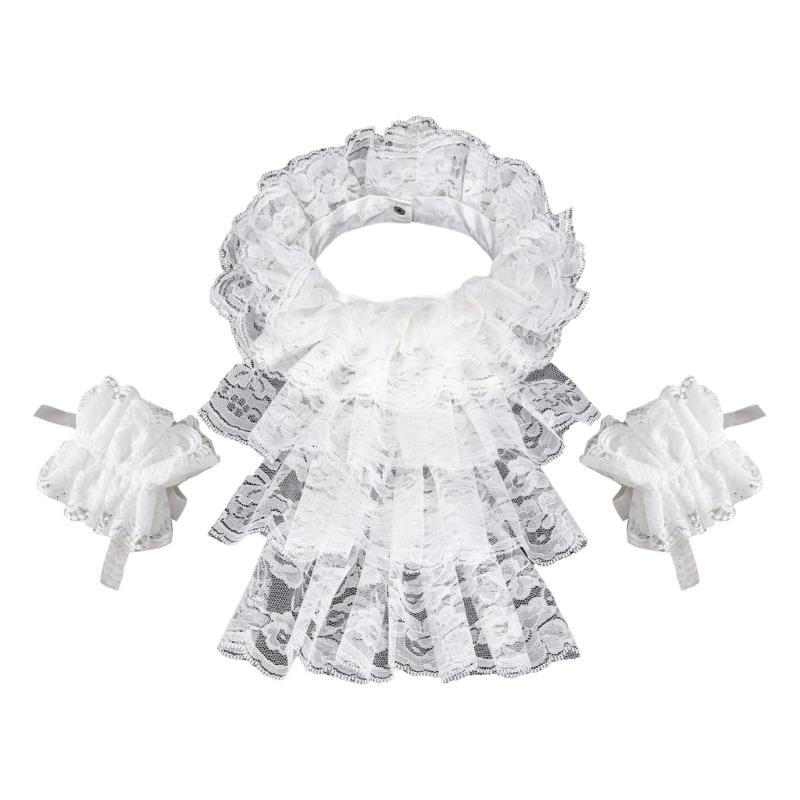 Halloween Retro Victorian Lace Jabot Collar and Cuffs Set Colonial Lace Collar Detachable Faux Sleeve Costume Accessory