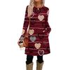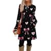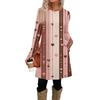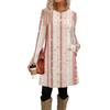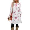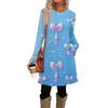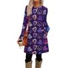 Women's Fashion Casual Pocket Decorative Button Dress Round Neck Long Sleeve Printed Dress