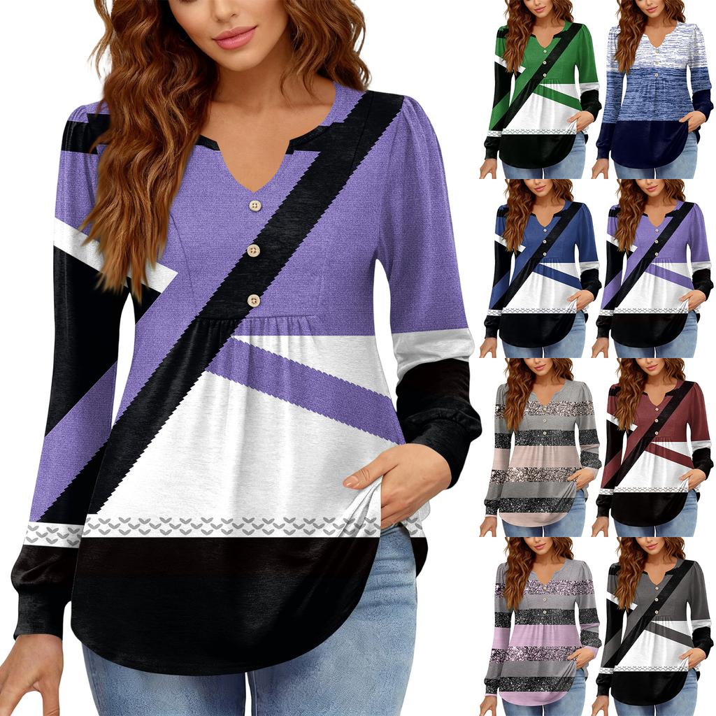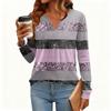 Women's Relaxed,Fit V,Neck Vintage Color,Blocked Floral Print Long,Sleeve Pullover Tee