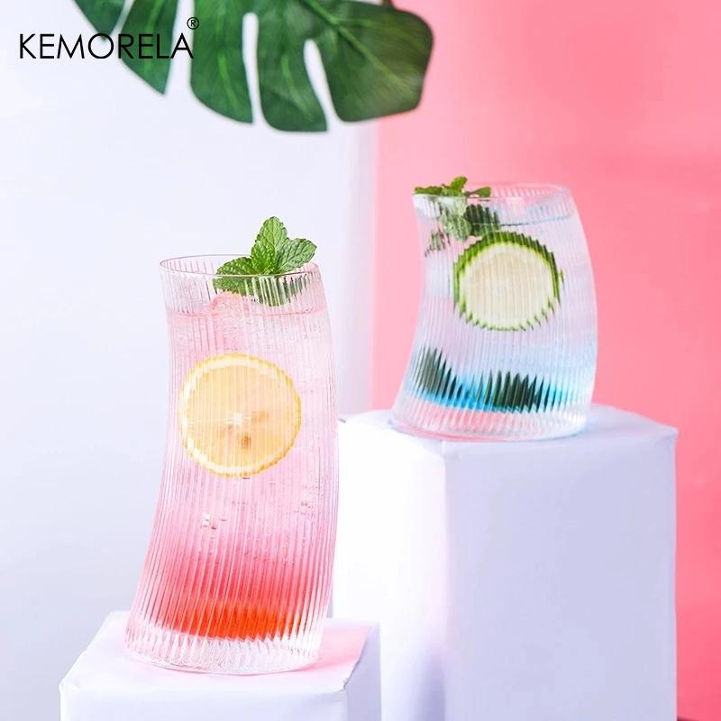 450ml/300ml Glass Cup Sail Shaped Rolling Vertical Transparent Tea Juice Glass Beer Can Milk Drink Cups Breakfast Mug Drinkware