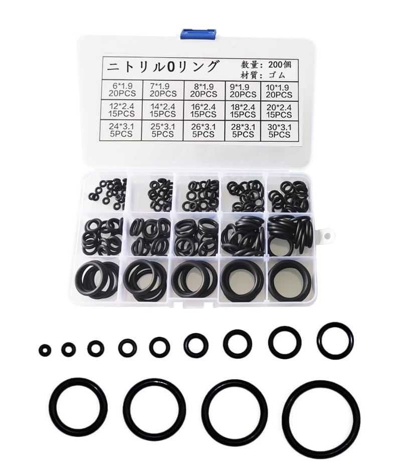 Product Dimensions: 6*1.9*20pcs, 7*1.9*20pcs, 8*1.9*20pcs, 9*1.9*20pcs, 10*1.9*20pcs, 12*2.4*15pcs, 14*2.4*15pcs, 16*2.4*15pcs, 18*2.4*2.4*18*2.4*18*2.4*15pcs. 15pcs, 2 0*2.4*15pcs, 24*3.1*5pcs, 25*3.1*5pcs, 26*3.1*5pcs, 28*3.1*5pcs, 30*3.1*5pcs; total number is 200