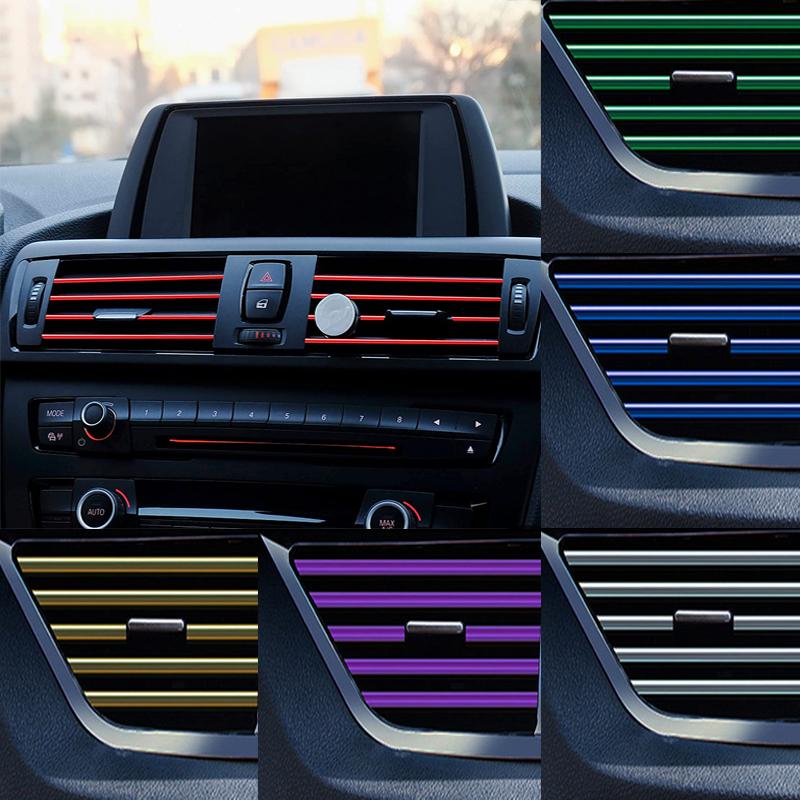 10Pcs U-shaped Car Air Outlet Decorative Strip Chrome-Plated PVC Car Interior Styling Decor Clip Trim Auto Interior Accessories