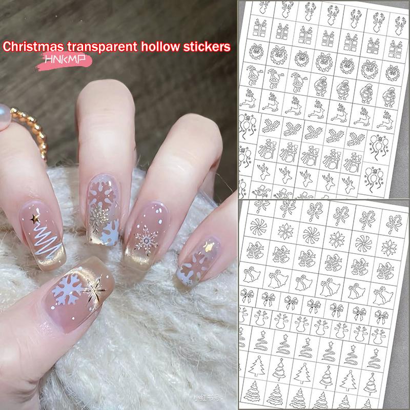 Winter Snowflake Snow Tree Airbrush Stencil for Nails Christmas Decors Hollow Nail Stickers French Manicure Tips