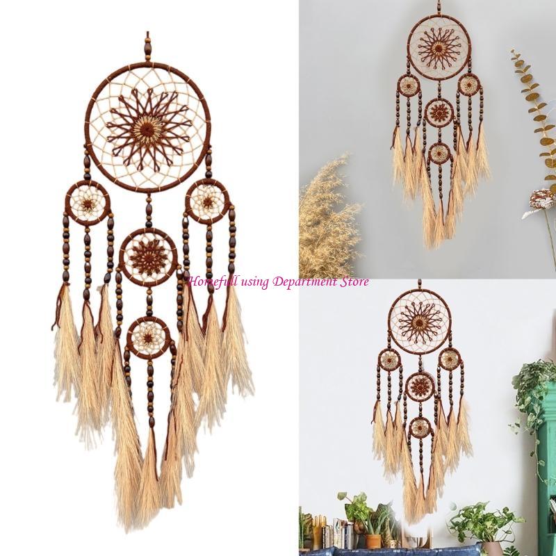 Elegant Macrames Dreamcatchers with Pampas Grass and Wooden Beads Wall Hanging Ornament for Living Room Bedroom Decors