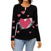 Women's Casual Round Neck Hollow,out Pullover Long Sleeve Valentine's Day Heart Print T,shirt Top