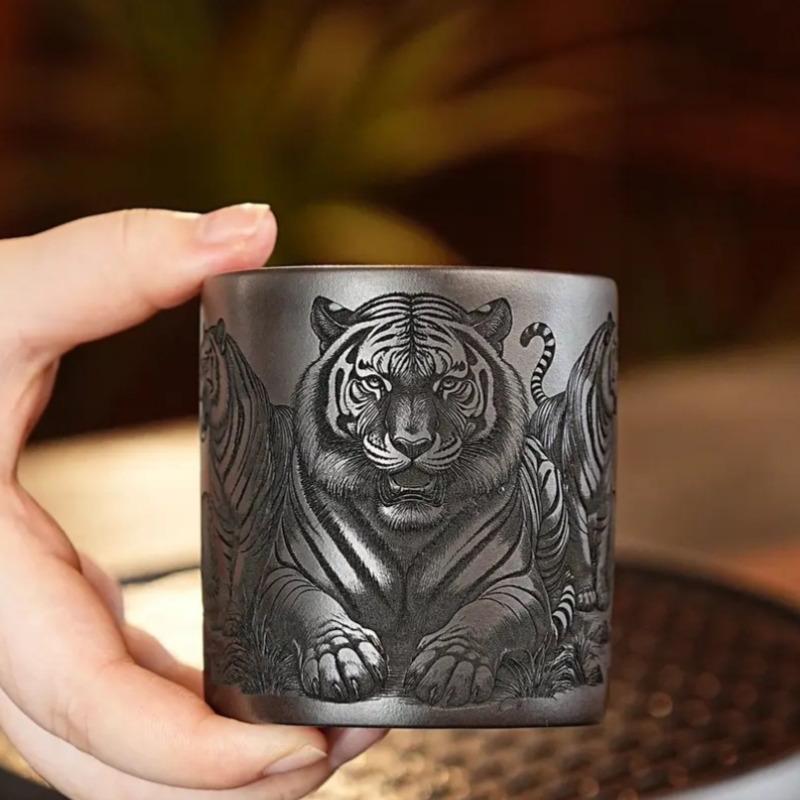 200ml Yixing Zisha Five Tigers Pattern Teacup Retro Tea Bowl Set Of Cups Tea-tasting Meditation Cup Chazhan Master Cup Tableware