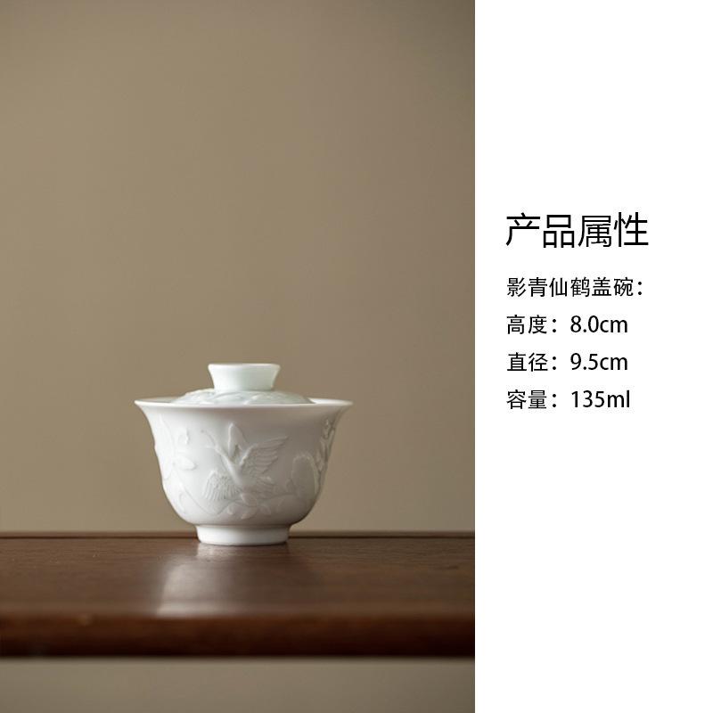 135ML Relief Misty Blue Gaiwan Ancient Tea Tureen Household Tea Bowl With Lid Kit Tea Brewing Cover Bowl Cafes Accessories Gift