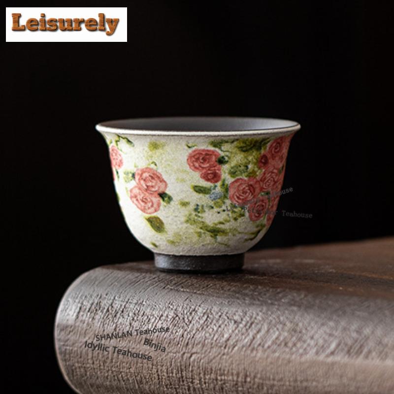50ML Oil Painting Rose Flower Language Teacup Aesthetic Tea Bowl Set of Cups Tea-tasting Smelling Cup Chazhan Master Cups Cha