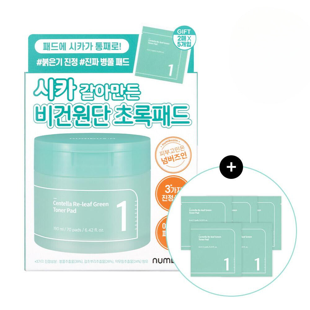 numbuzin No. 1 Centella Re-leaf Green Toner Pad 70 Pads Special Set (+10 Pads)