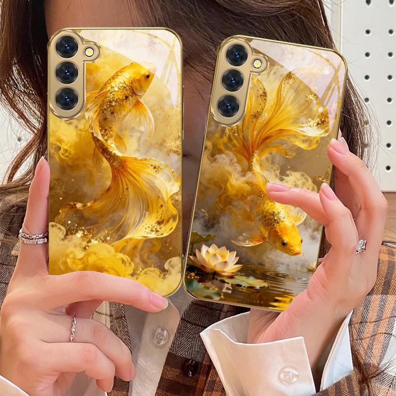 Harmonious Golden Carp For Samsung Galaxy S20 FE S21 S22 S23 Plus S24 Ultra 25Ultra S21+ S9+ S22Plus Golden Glass Phone Case