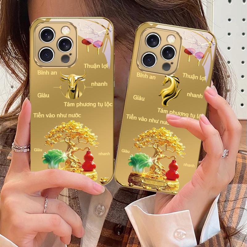 Gradient Golden Tiger For IPhone 17Pro Max 16 17 Pro 15 P Ro 14 13 Plus 12 Mini 11Pro Max XR 16E 17 Air Golden Glass Phone Case