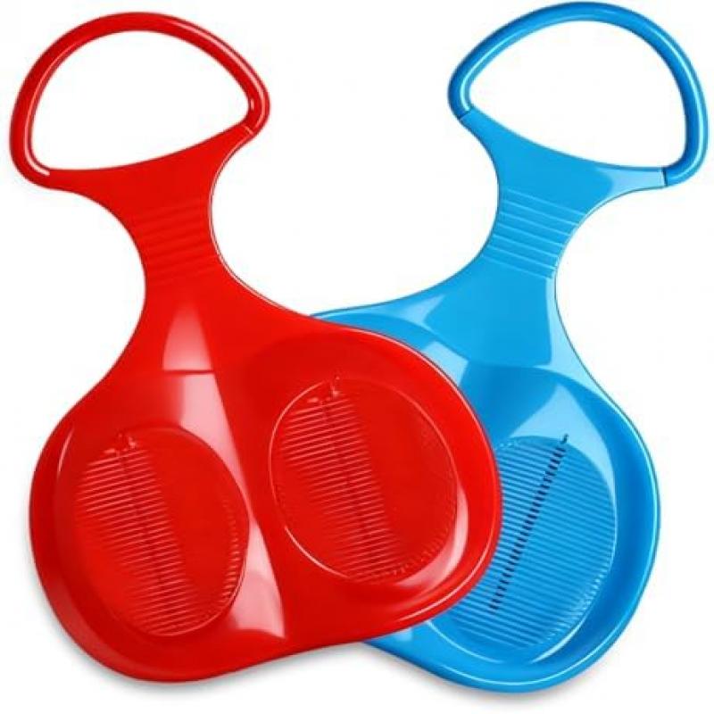 2er Set Sled Bob Blue & Red, Sled with Handle, Durable Snow Slider, Winter Outdoor Sport, Suitable for Kids and Adults, For Unforgettable Winter Days