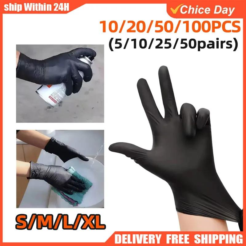 10-100pcs Black Nitrile Gloves Disposable Gloves for Household Cleaning Work Safety Tools Gardening Gloves Kitchen Cooking Tools
