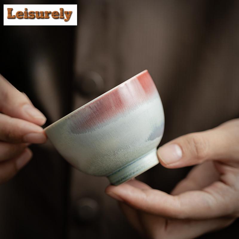 120ML Aurora Kiln Change Red Blue Glaze Teacup Coffee Mug Tea Bowl Mug Fragrance Cup Jianzhan Master Cup Tea Services Supplies