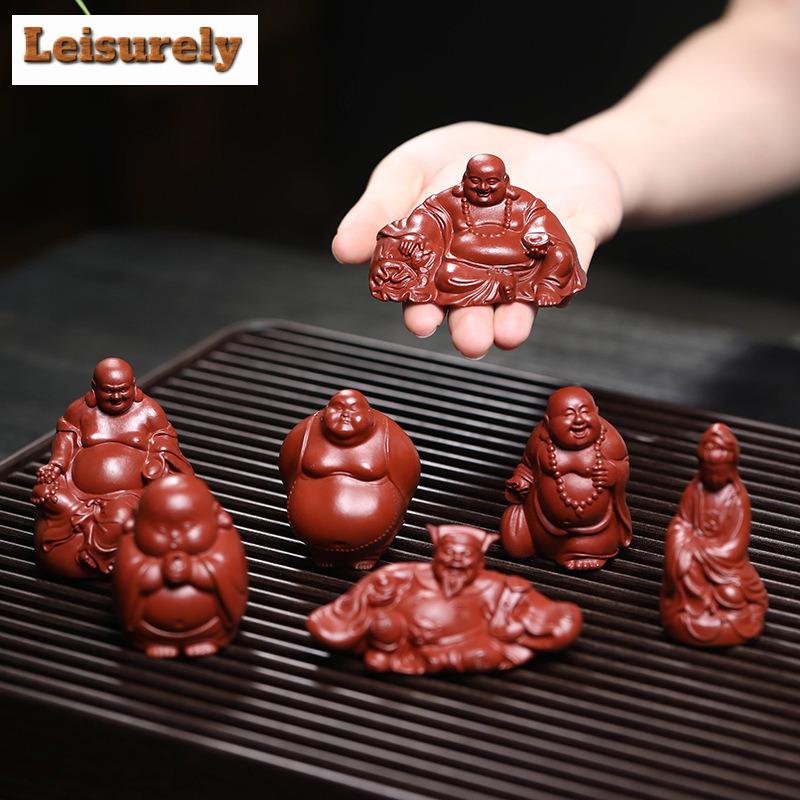 Purple Clay Maitreya Buddha Guanyin God Of Wealth Tea Pet Luxury Exquisite Miniature Tea Figurine Play Toys Tea Statue Ornaments