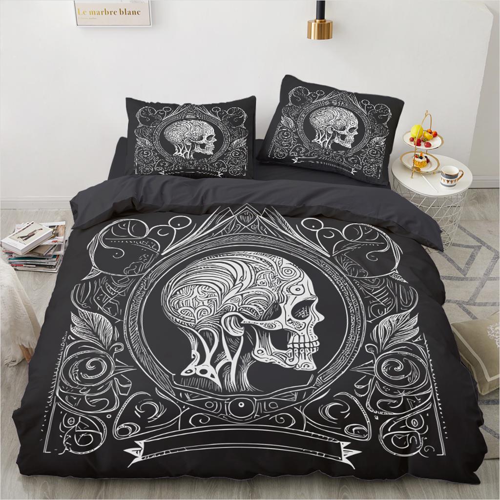 Skull Bedding Set Twin 140x200cm - Vintage Baroque Halloween Duvet Cover 2/3PCS, Luxury Skeleton Comforter cover,Gothic Bed Set
