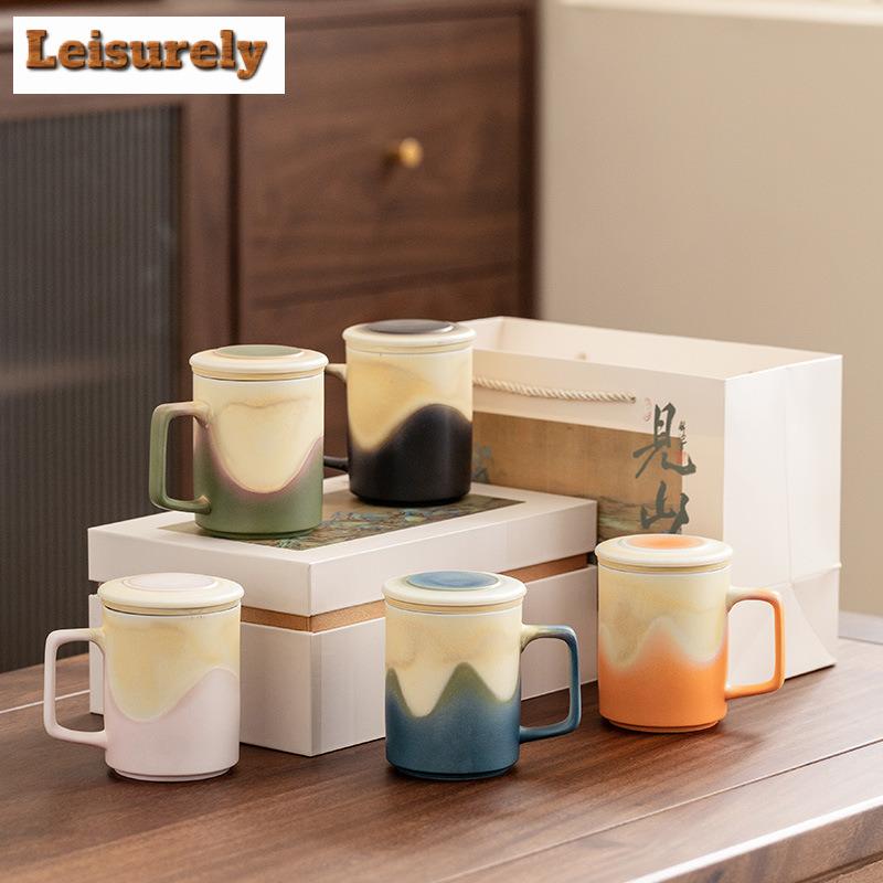 320ml Gradient Distant Hills Straight Body Filter Tea Separator Cup Handmade Tea Mug with Infuser Tea Making Office Water Cup