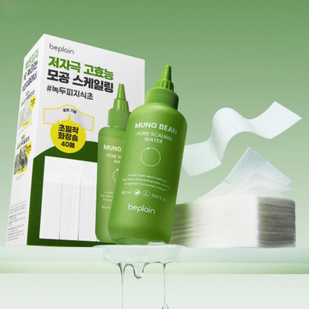 BEPLAIN Mung Bean Pore Scaling Water 150ml – Sebum Softening & Pore Care Set