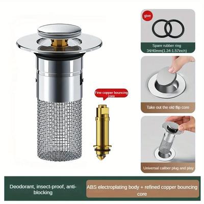 Universal Odor-Proof Pop-Up Drain: Anti-Clogging Press-Type Filter for Washbasin