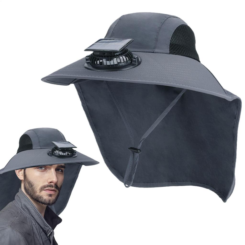 Sun Hats For Men Wide Brim Solar Powered Fan Outdoor Sun Hat Solar Fan Fish Accessories With Neck Flap Wide Brim UV Protection