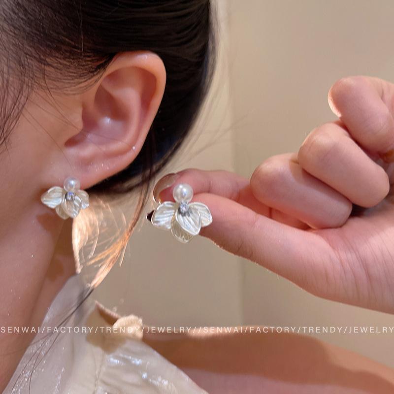 French Retro Pearl Enamel Clover Earrings Women's Niche Design Sense Exquisite High Sense Gentle Earrings