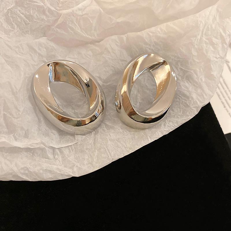 Silver Needle Metal Smooth Oval Stud Earrings Casual Simple Personality Commuting Versatile Earrings Light Luxury Niche Earrings