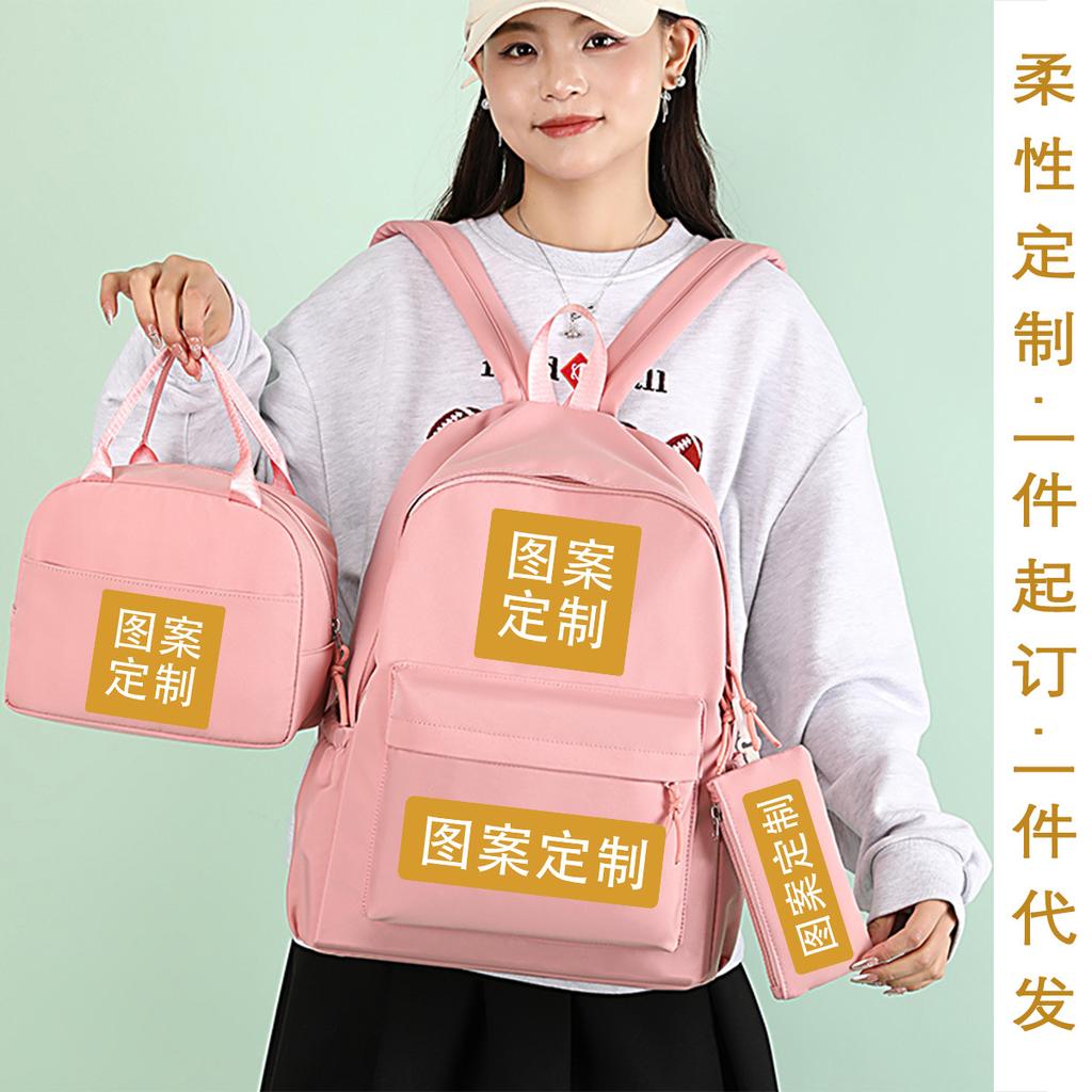 Three-Piece Schoolbag, Student Double Shoulder Schoolbag, College Meal Bag, Casual Pencil Bag, And Hot Stamping Three-Piece Set.