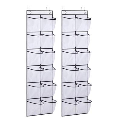 12 Mesh Pockets Wall Storage Bag Clear View Pocket Hanging Shoe Organizer Rack Behind Doors With 2 Metal Hooks Rack Bag