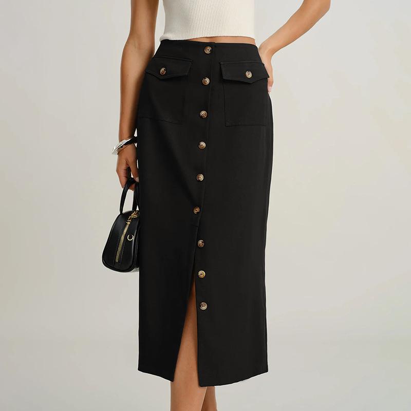Autumn New Style Elegant Commuting Straight Skirt Retro Button Slit Versatile Skirt
