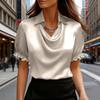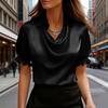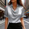 Women's Fashionable Lapel Short Sleeved Temperament Pullover Shirt Top