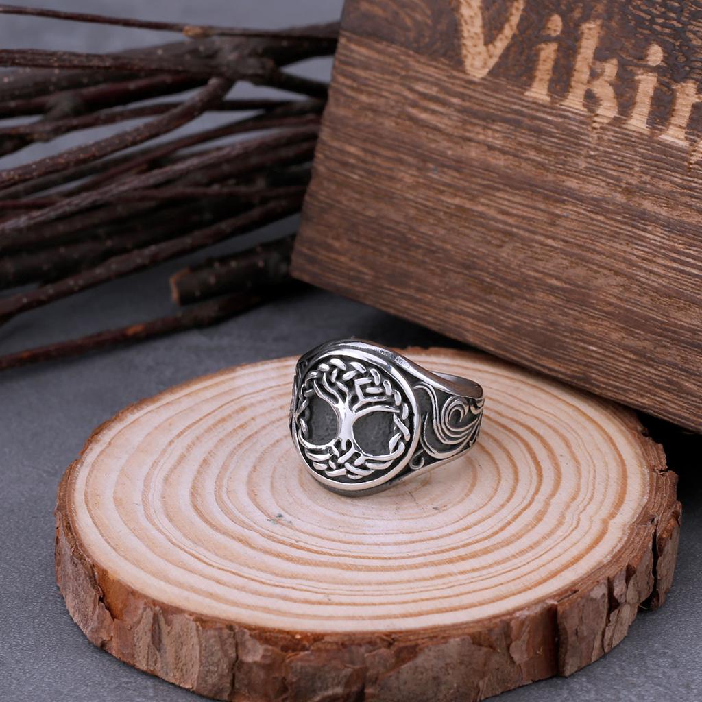 Viking Tree of Life Yggdrasil Ring Men Stainless Steel Rune Biker Jewelry Nordic Odin Fashion Gift for Him