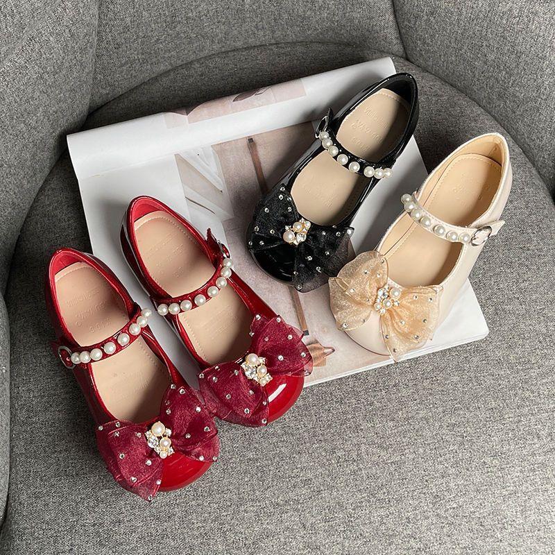 Kids MaryJanes Round Toes Lace Bows Girls Dance Shoes Cute Lace Bows Spring Autumn Children Flat Shoes Non-slip Soft