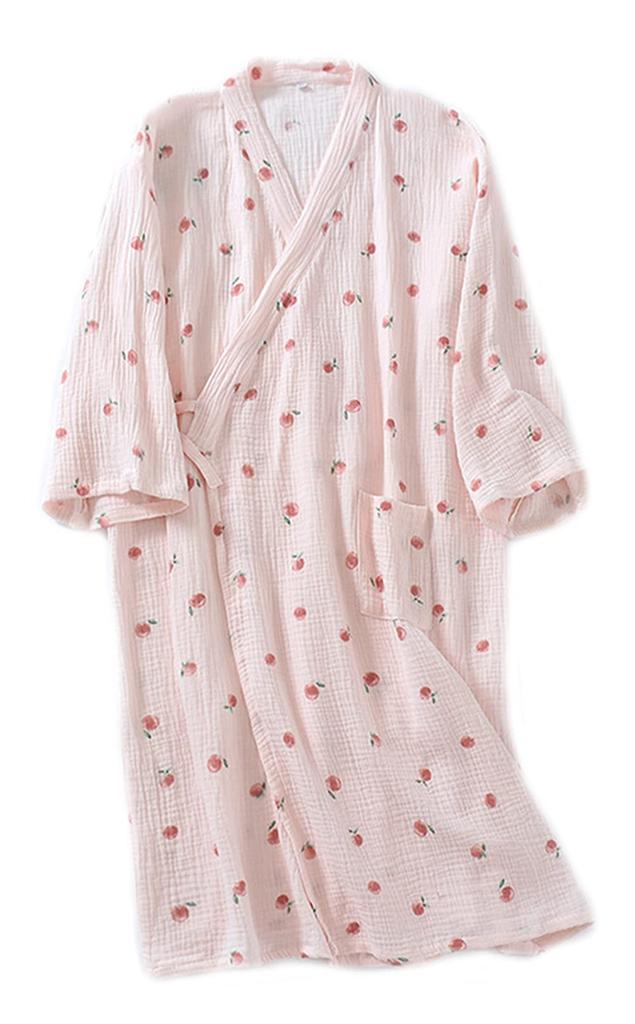 SLMJMY Gauze Long Perfect for or As Cute Japanese Perfect for and Fall Women's Pajamas, Loungewear, Open-Front, Sleeves, 100% Cotton,
