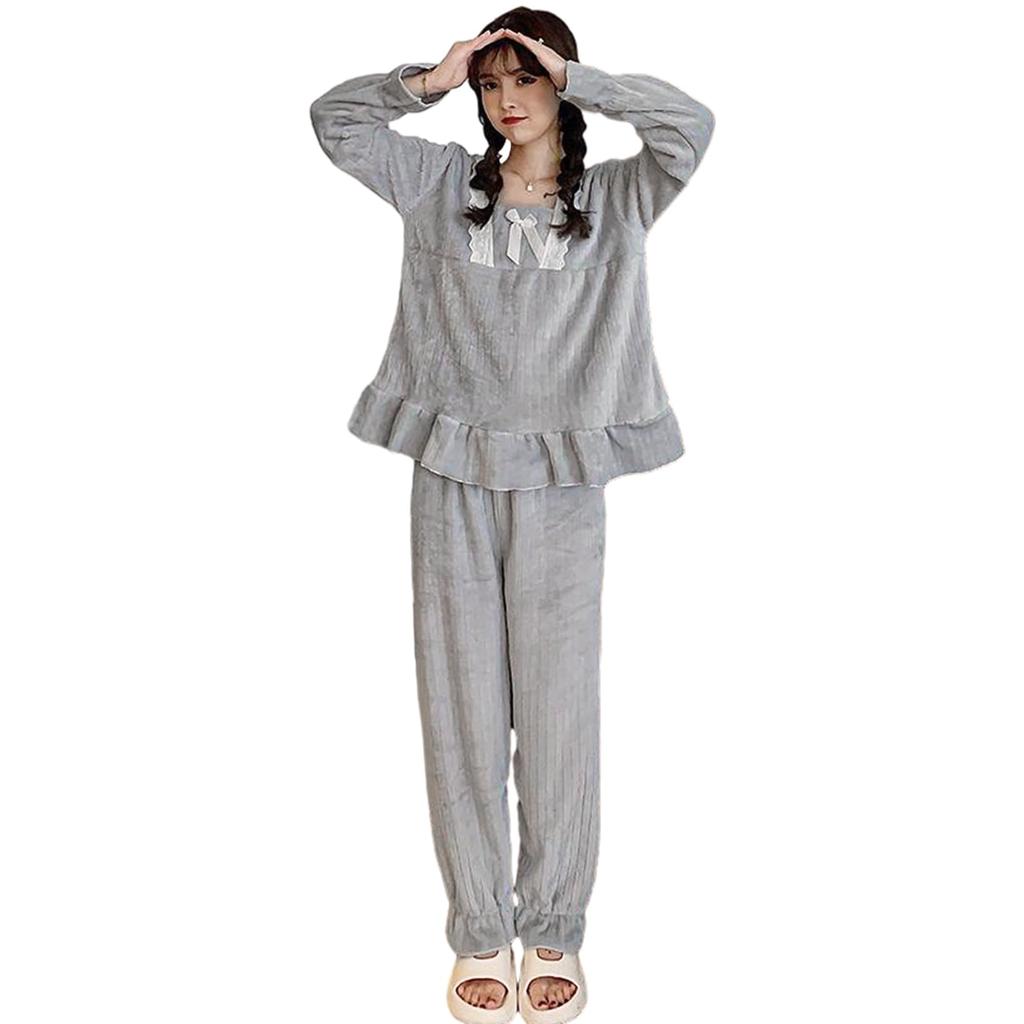 TeMibery Lyric Long Sleeve Pajama and Warm for Fall and Top and Plus Sizes Featuring a Ribbon and Lace Comfortable and Comfortable for Women's Set,