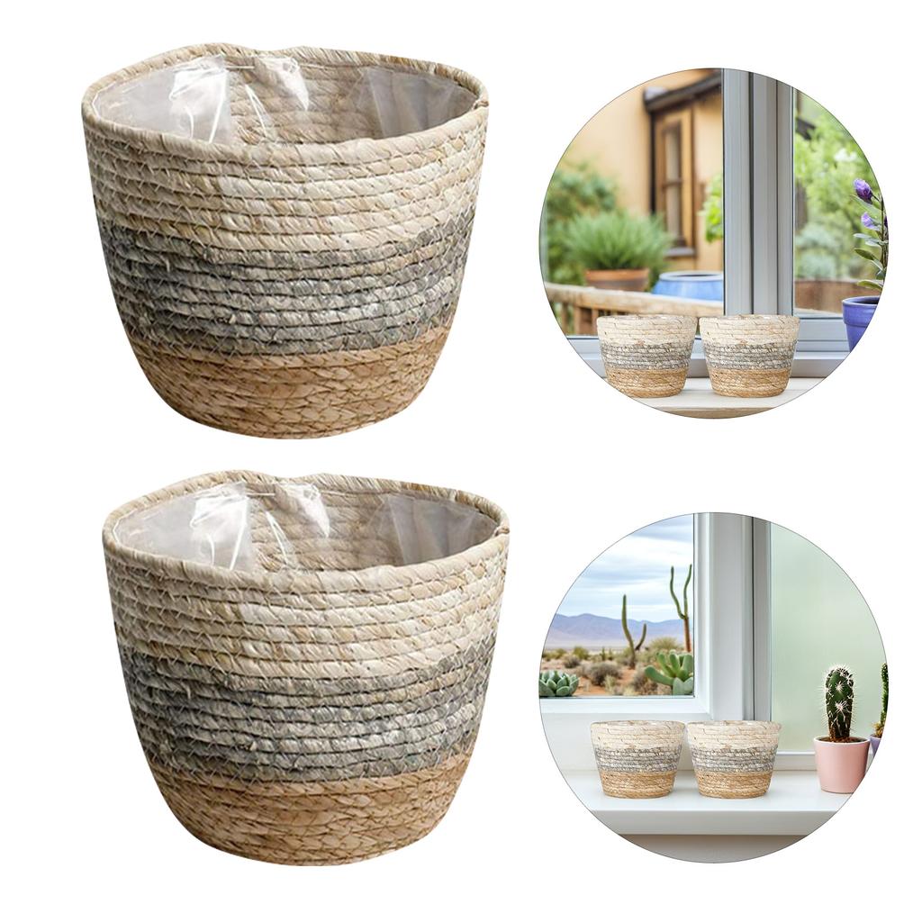 2Pcs Straw Flower Baskets Woven Planters Decorative Holders for Plants Desktop Garden Decor Woven Flower Baskets