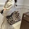 Leopard Pattern Travel Warm Plush Shoulder Bag Women Large Capacity Chain Decor Tote Bag Vintage Soft Faux Fur Top Handle Handbag