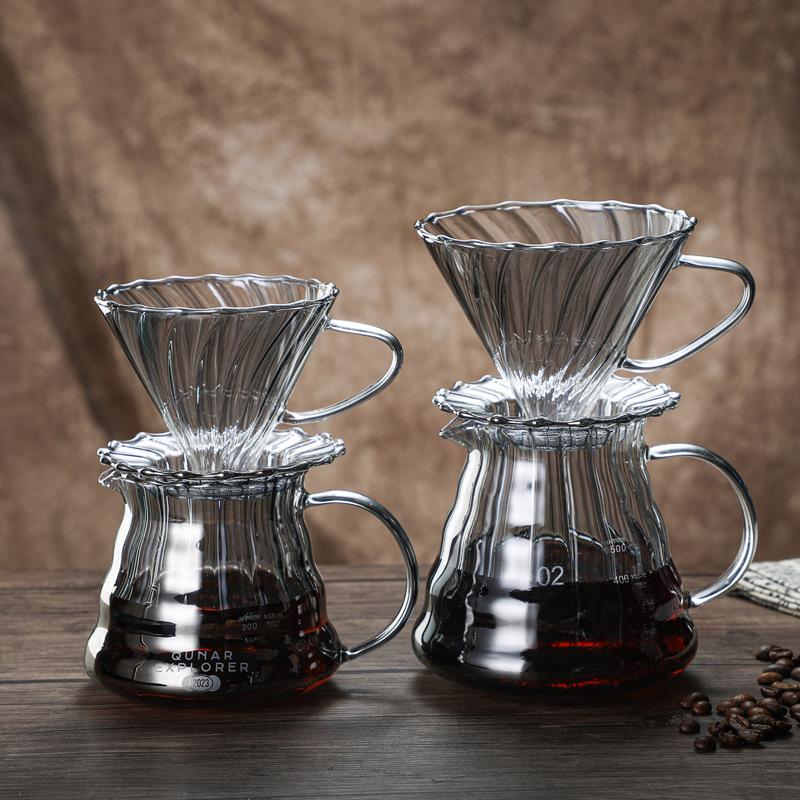 New Glass Soot Vertical Pattern Cloud Pot Coffee Pot 600ml Set Soot V60 Filter Funnel Filter Cup