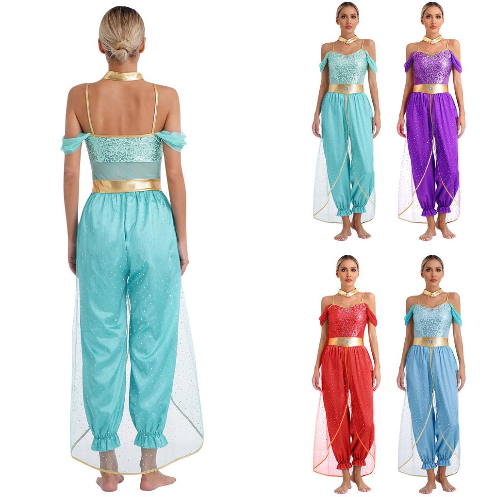 Women's Princess Costume Set Sequins Jumpsuit Long Wide Trousers Carnival Cosplay Party Dance Fancy Dress Outfit