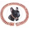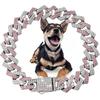 Dog Chain Diamond Cuban Collar Walking Metal Chain Collar with Design Secure Buckle, Pet Cat Cuban Collar Jewelry Accessories