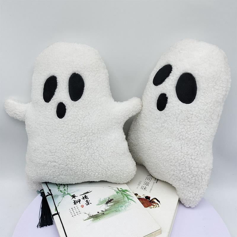 Cute Ghost Shape Fluffy Lamb Wool Plush Pillow Soft Cushion for Sofa Bed Decor